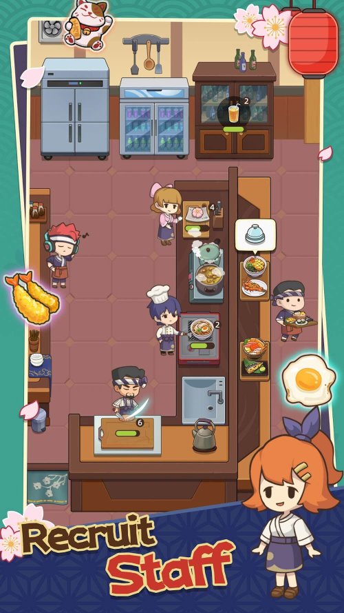 You are going to be the owner of a fast expanding restaurant! This is not about rolling rice. It’s about your management skills and the atmosphere you create! Don’t worry! This game is suitable for even the casual gamers. The game has an ideal mix of relaxation and strategic growth.
