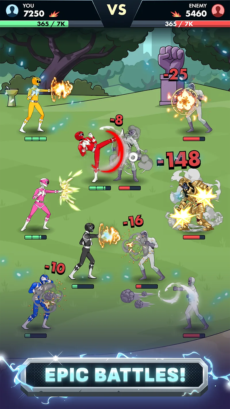 - Dynamic RPG Progression: Level up your heroes, enhance their gear, and unlock signature abilities. Every Ranger brings a unique skill set to the battlefield, allowing for endless tactical combinations.