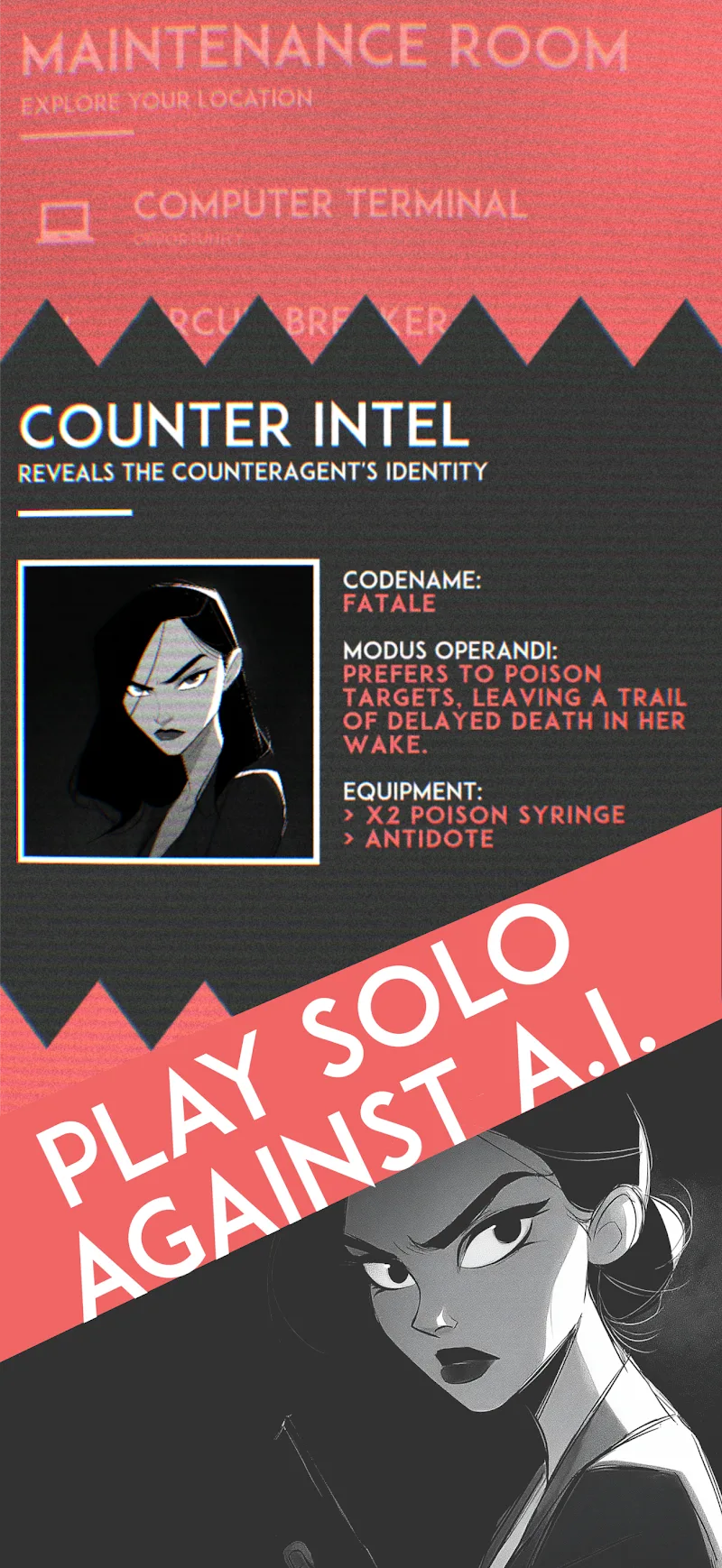 The discussion phase is where you take the role of an evaluator to defend your actions and the evidence you present. You will then vote on who the liar is. If you take the role of the Spy, your goal is to complete the intel collection before time runs out, whilst the Target should be directing the group to the wrong suspect to protect their cover. In emotionally charged gameplay, the fastest are the most intelligent.