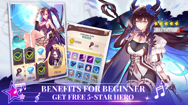 - Effortless Idle Progression: Designed for both hardcore gamers and busy individuals, the game offers a seamless idle progression system. Level up your characters and gather rewards without the need for constant grinding. This allows you to progress through the story at your own pace while maintaining your daily routine.