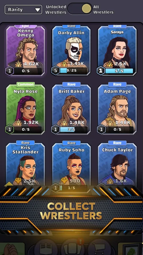 • Upgrade and Evolve: Train your wrestlers, upgrade their signature moves, and unlock their full potential. Transform rookies into icons and build a dynasty that lasts.