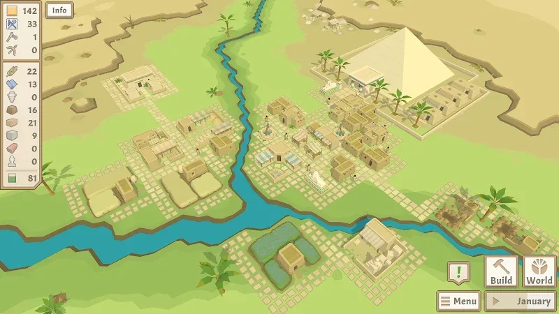 • Dynamic Resource Management: Oversee the production of vital goods like bread, beer, linen, and papyrus. Ensure your granaries are full before the Nile flood season to keep your population thriving.