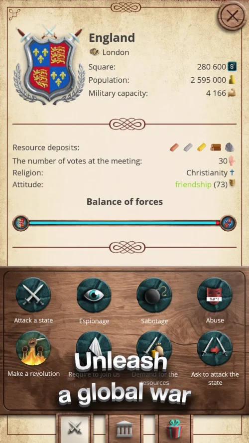 – Diplomacy & Espionage: Use silver tongues or hidden daggers. Send diplomats to secure treaties or, spies to sabotage enemy defenses from within.