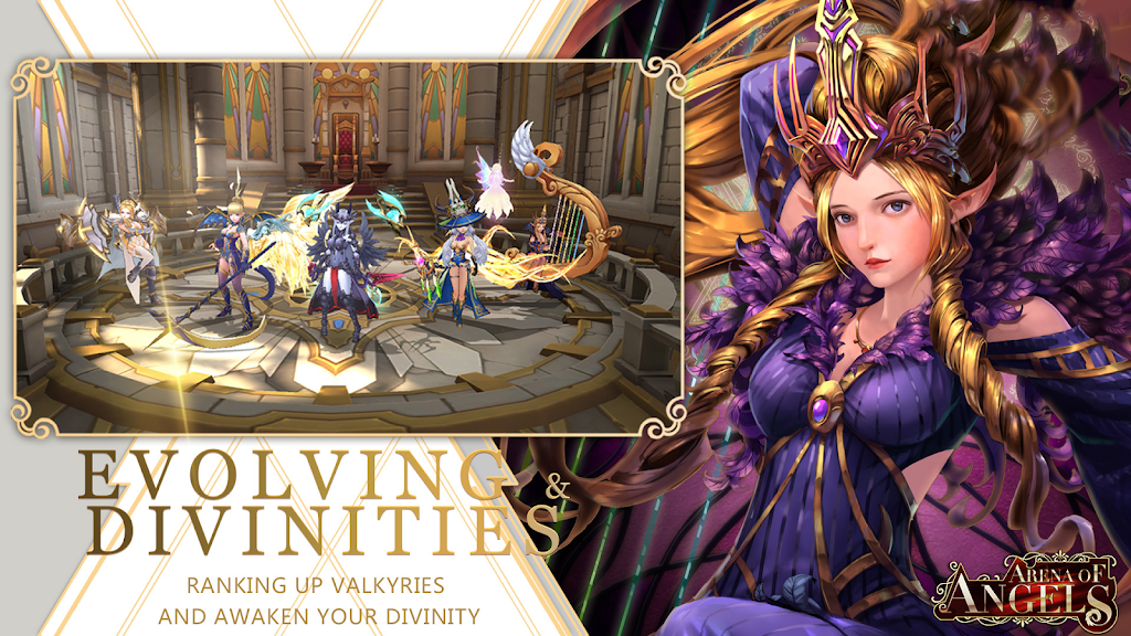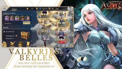 Summon powerful Valkyries in Arena of Angels MOD APK! Experience Nordic mythology, strategic card battles, and epic RPG action. Lead your divine heroines to victory now!
