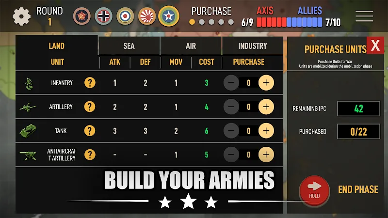 Success in Axis & Allies 1942 Online MOD APK requires more than just brute force; it requires a masterful grasp of the game’s six-phase turn system. Players must manage their Industrial Production Credits (IPCs) during the Purchase Units phase to bolster their forces with infantry, tanks, aircraft, or massive warships. Strategic planning continues in the Combat Move phase, where you plan offensives and move units into hostile territories.