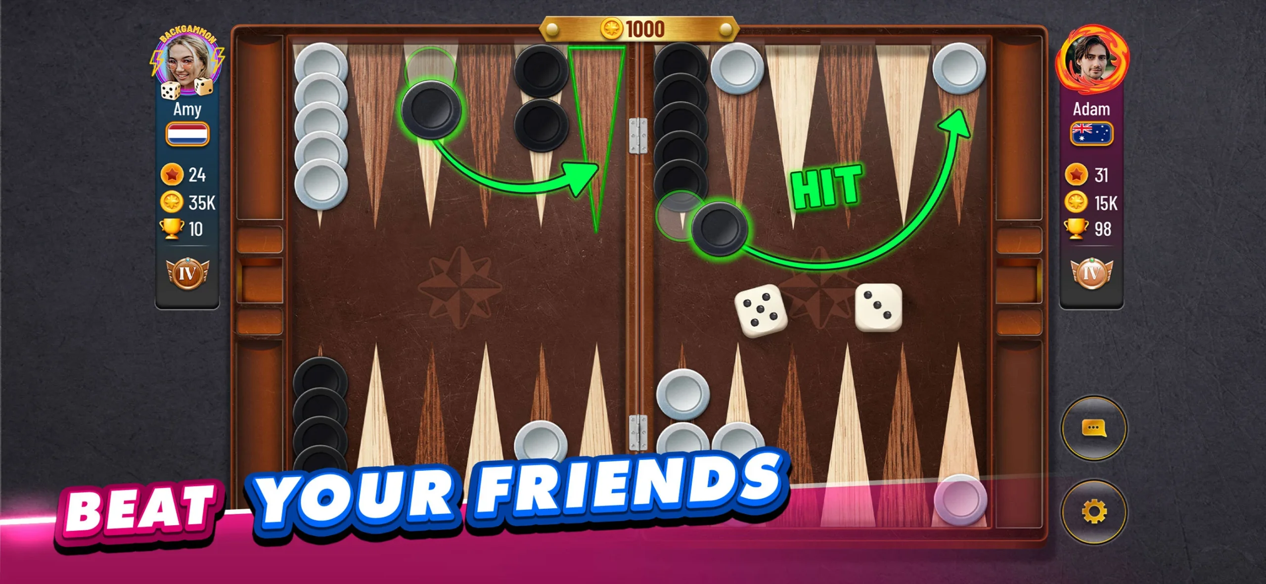 – Hints & Tutorials – New to Backgammon? Learn the rules and discover winning strategies with helpful tips and tutorials.