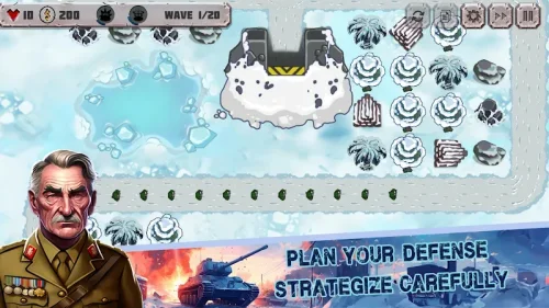 Command elite WWII battalions in Battle Strategy MOD APK: Tower Defense. Stop unyielding waves of tanks, improve your weapons, and guide your army to triumph. Focus on that victory!