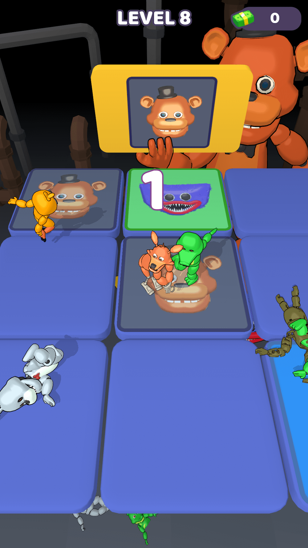 To survive Bear Party MOD APK: Fall Down IO, you need a lot of careful movement, and also some luck on your side. Watching the center hologram or one of the side screens takes center focuse, as the screens will show a movement of the ‘safe’ tile. To avoid being pushed and blocked, you need to reach the ‘safe zone’ tile. The ‘safe zone’ can be a certain color, emblem or even a fruit. Also, as time counts down, bear crowds will increase and the amount of tiles will decrease to create a fighting zone of bear survival. Make the bears lose and move the best to be sure you get to move on in the levels.