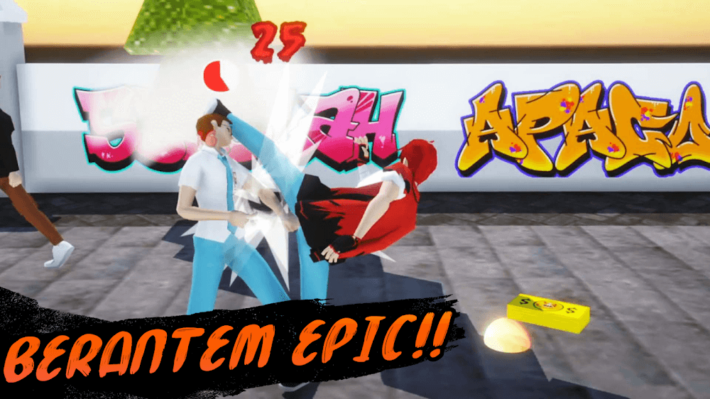 Berandal Sekolah MOD APK blends open-world exploration with classic beat-’em-up mechanics and RPG progression. You begin your journey as an underdog, but by completing quests and winning brawls, you earn experience points to level up Ucok’s attributes. Increase your strength, agility, and endurance to take on the most feared seniors in the school. The game also features a choice-driven dialogue system, allowing you to handle situations with diplomacy or brute force. Balancing your social life, romantic interests, and your quest for power is the core of the Berandal Sekolah MOD APK experience.