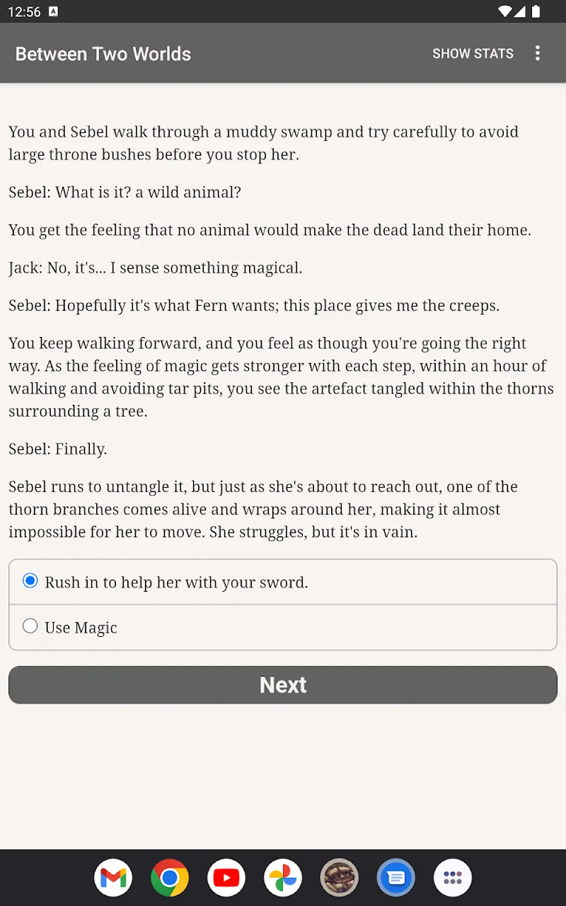 Welcome to Between Two Worlds MOD APK. This RPG is unique because it takes the visual side out of the experience and lets you experience the world through your imagination. With a remarkable 40,000 word story by Liam Parker, you will travel through each word of the story, stroke the canvas, and pick a different path each time. Each choice will take you through a different world of politics and a different world of self sacrifice.