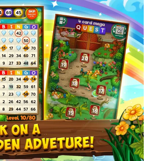 In Bingo Quest MOD APK: Summer Adventure, the primary objective includes crossing off bingo patterns and managing your cards in unison. Each win in the traditional game of bingo is a step in the right direction, as each win is to be collected. Number cards, once marked, will get holders special pieces to the puzzle. Each piece aids in the unlocking of various Scenic Worlds and help complete the puzzle. Upon completion of a puzzle, a summer adventure milestone is achieved in the form of a high quality illustration.