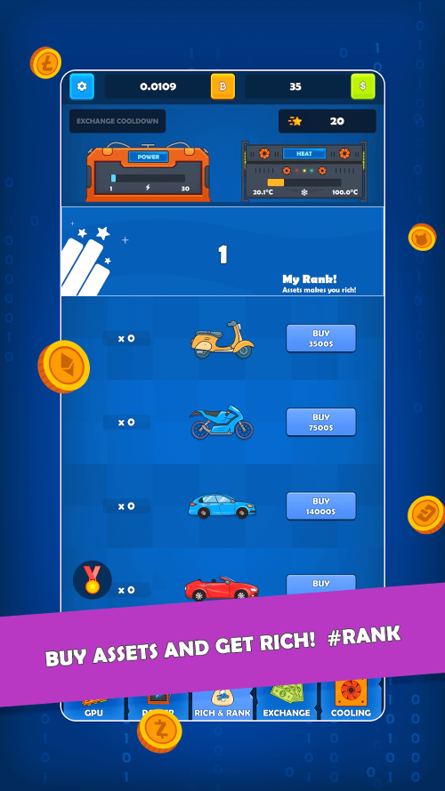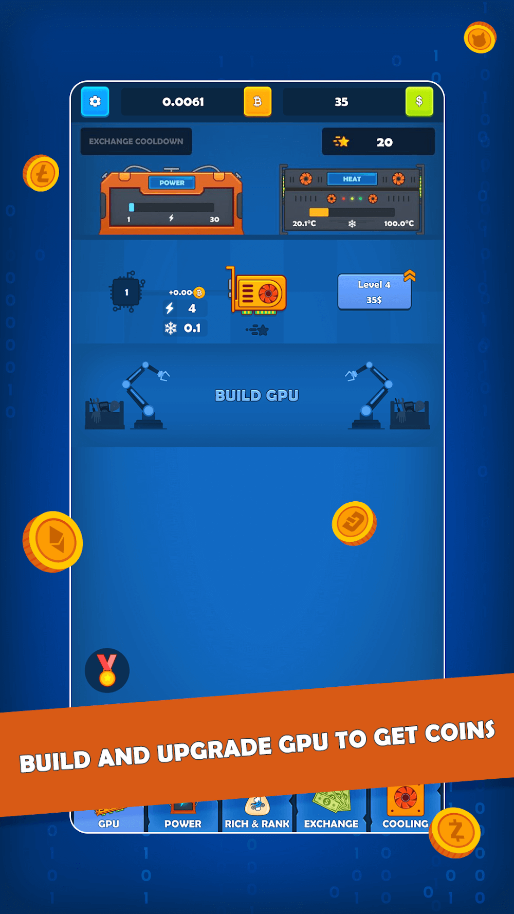 Create your crypto empire! Handle your GPUs, manage power, and mine Bitcoin to be the best digital tycoon. Compete worldwide and grab fancy collectibles.