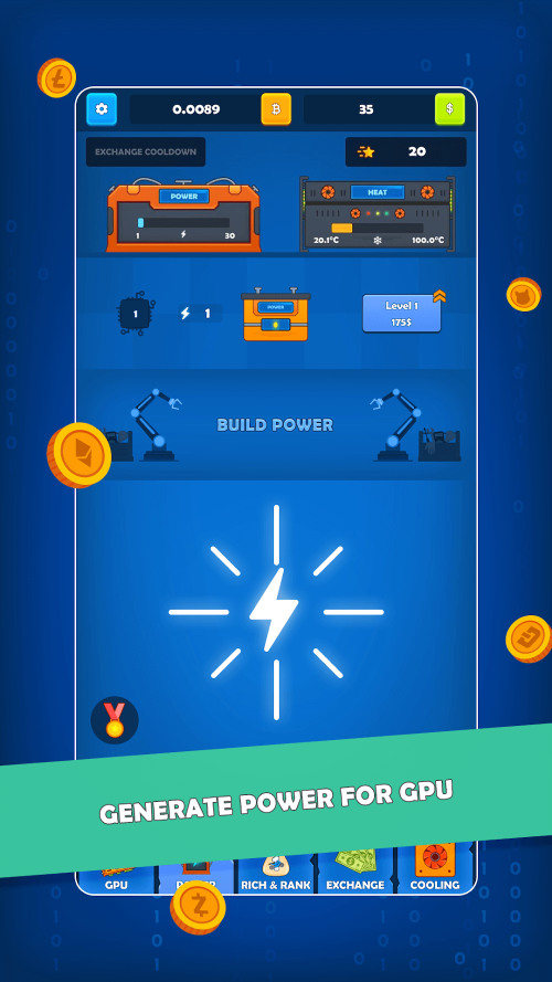 Your level of success in the Bitcoin Crypto Idle Miner MOD APK, is determined by your ability to grow. Beginning with simple mining devices, you accrue productivity milestones. As wealth accumulates, the game becomes an intricate management simulator. Here, you will learn to offset the GPU generated heat against the power needs of your facility. System performance will be crippled by an overload, so optimum power and cooling upgrades are needed to achieve and maintain desired performance levels.