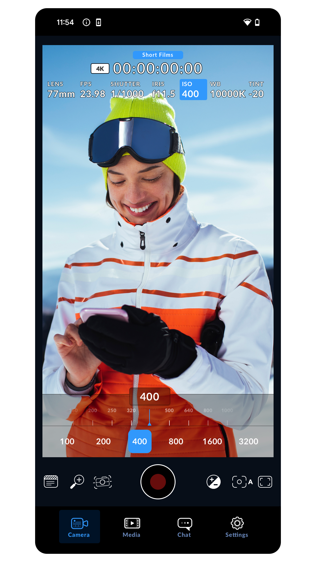 • Adjustable frame rate, shutter angle, ISO, white balance, and focus