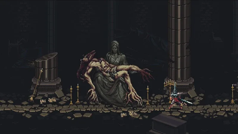 - Exquisite Pixel Art: Experience a hauntingly beautiful world rendered in high-quality pixel art. Every frame is dripping with atmosphere, capturing the grim essence of a world suffering under the weight of The Miracle.