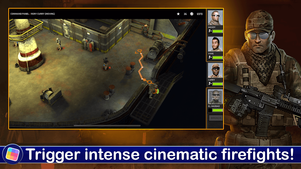 Breach & Clear MOD APK: Tactical Ops merges the thrill of intense action with the strategic depth of a high-end RPG. Players take control of a four-man fireteam, issuing precise orders for movement, breaching, and engagement. The game utilizes a sophisticated planning phase where you map out your squad’s path, followed by an execution phase where you watch your tactics come to life. You must manage squad morale and equipment durability while navigating complex, multi-room maps. Utilize camouflage to execute stealthy ambushes or use heavy suppression and flashbangs to overwhelm fortified positions. The core experience is built around the fine-tuned balance of offensive pressure and defensive resilience; every corner turned is a calculated risk, and every room cleared is a hard-won victory.