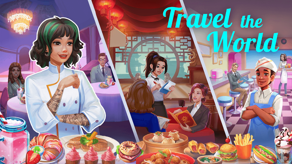 – Challenges and exciting events: Participate in unique rewards, large bonuses, and limited time events to get unique decorations and win the culinary challenges!
