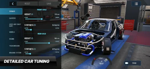 – More control: Set your desired tire pressure, suspension height, and wheel camber for a tighter drift.
