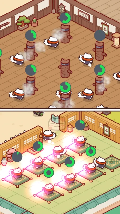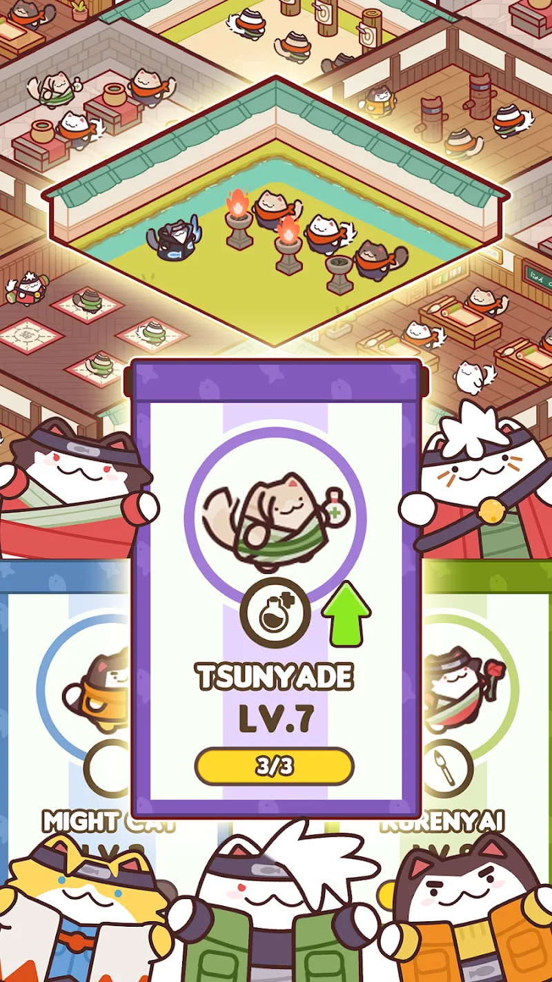 -CONTINUOUS PROGRESS: Your school will never run out of sleep as long as you have cat ninja students. Nothing will be cuter than a school of ninjas that will earn you money even as you sleep.