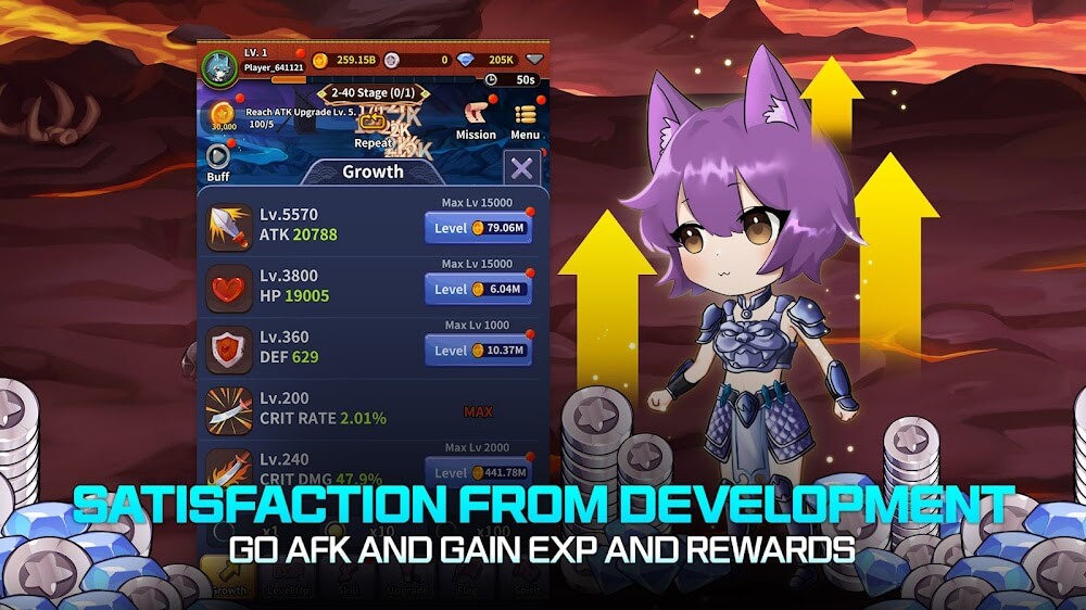 Gameplay in Cat Warrior Girls MOD APK requires action and strategy to win games. You need to manage the heroes in the Frontline and Backline roles. Frontline roles are where heroes take damage while Backline roles are where heroes stay back and support. There are also skill trees where you can get resources to invest in skills. The combat and skills change your heroes during combat. There are also great equipment sets that are super rare and give great bonuses when the sets are completed.