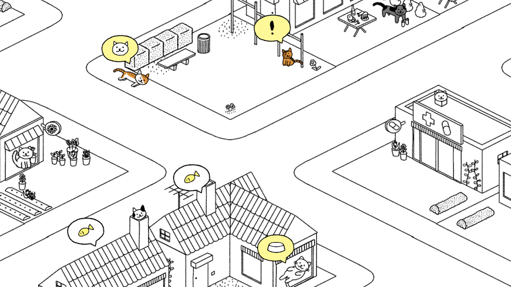 The game has a simple way of collecting resources that requires minimal player involvement. Different keys can be pressed in order to perform certain tasks such as collection of hearts and fish. The game controls continue to become simpler and simpler as the player’s village continues to expand. Each individual cat can be given requests from a list on his/her information board. Each unique task can be completed in order to receive rewards and decorations from the cat. The player’s involvement determines the success of the village as the player can give the cats food and find hidden collectibles.
