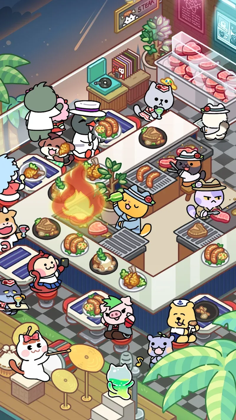 Balance active management with idle levels of Catstaurant: Cat Chefs. Take charge of each step in the food preparation and service process to maintain the speed and quality of service. Master the coffee station to eventually unlock various sushi and grilling stations.