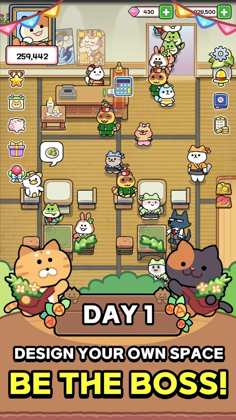 You are not just a manager. In Catstaurant: Cat Chefs, you are the heart and soul of your restaurant. Create a culinary masterpiece and watch your restaurant blossom with customers! It’s possible with the right combination of unique strategy, idle tycoon, and cute art!