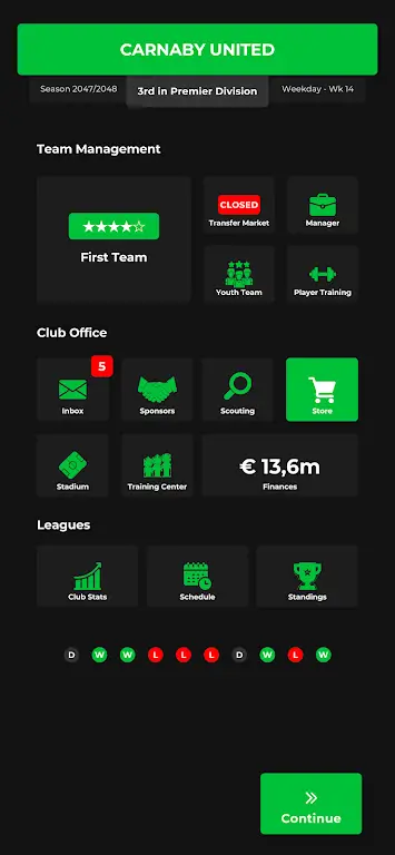 Integrate Financial Management: To achieve long-term success, you must break even. Maintain the club’s finances in the green by setting ticket prices, signing sponsorship contracts, and spending club profits wisely.
