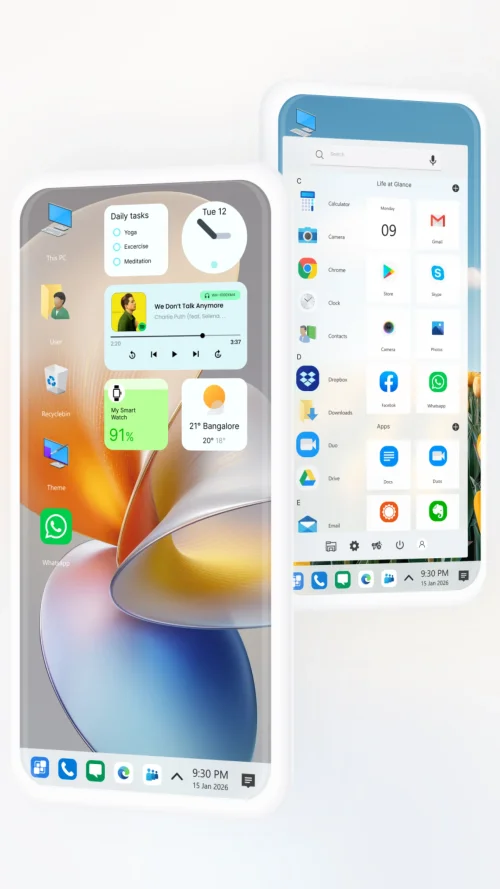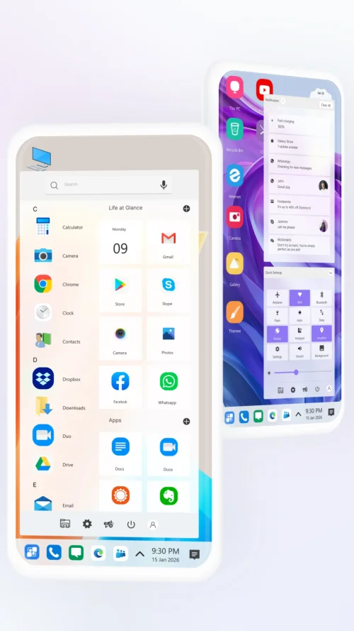 Computer Launcher Pro turns your Android into a PC-style desktop with Windows-like UI, Start Menu, Taskbar, themes, and powerful customization tools.