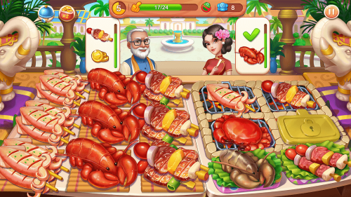 The goal of the game is to run the cooking center faster than any of your friends. As the head chef, you must tap, collect, and prepare all the ingredients, cooking, and serving your customers. The key to winning is order prioritization, proper cooking timing, and time management to not waste any food. As you level-up, you gain access to better equipment that will unlock a wider variety of food and more customers. The better you do the more money will be available to open different themed restaurants in different places.