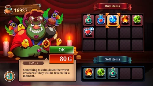 – RPG Progression & Shop System: Earn gold from your puzzle victories and spend it wisely. At the village shop, you can buy health potions and new spells that give you a strategic advantage over your opponents, but don’t forget to buy new equipment!