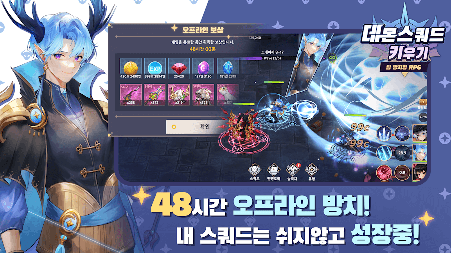 Assemble your ultimate Demon Squad MOD APK! Experience a thrilling blend of strategic team-based RPG combat and rewarding idle gameplay. Conquer the darkness today!