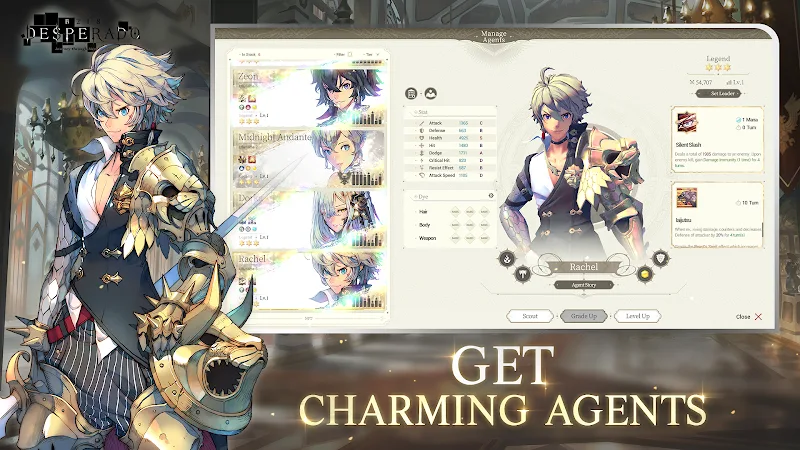 Embark on an epic quest in DESPERADO B218 MOD APK! Collect powerful operators, master elemental strategies, and save the continent of B218 Exos in this intense RPG.