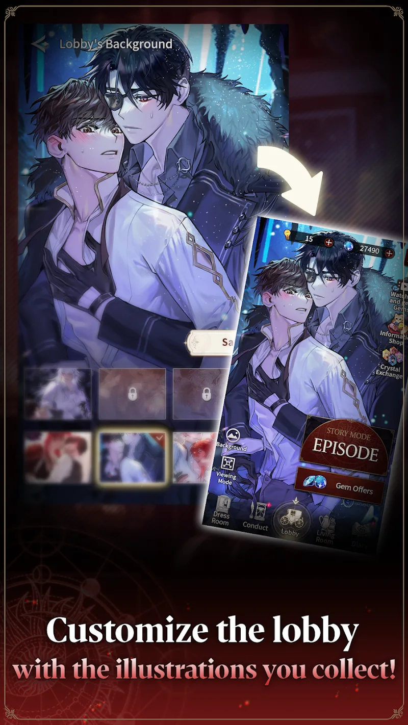 Dirty Crown Scandal: Fantasy BL combines the best elements of interactive storytelling and dating simulations. Players progress through episodes and chapters, making critical choices during key dialogue sequences. You will manage your affinity levels with each suitor, unlocking exclusive romantic scenes and deep personal confessions. The game features an intuitive interface that allows you to track your progress and revisit your favorite moments through a dedicated gallery. Whether you are navigating a tense political debate or a quiet, intimate moment in the moonlight, the game’s atmospheric soundtrack and vivid prose ensure a deeply captivating experience.