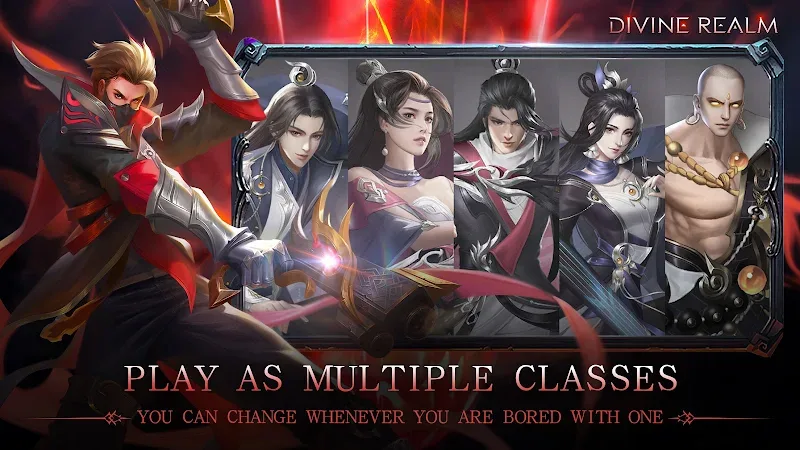 Unleash divine power in Divine Realm MOD APK! Choose from 8 classes, master the God Transformation system, and lead your guild to victory in this epic fantasy RPG.