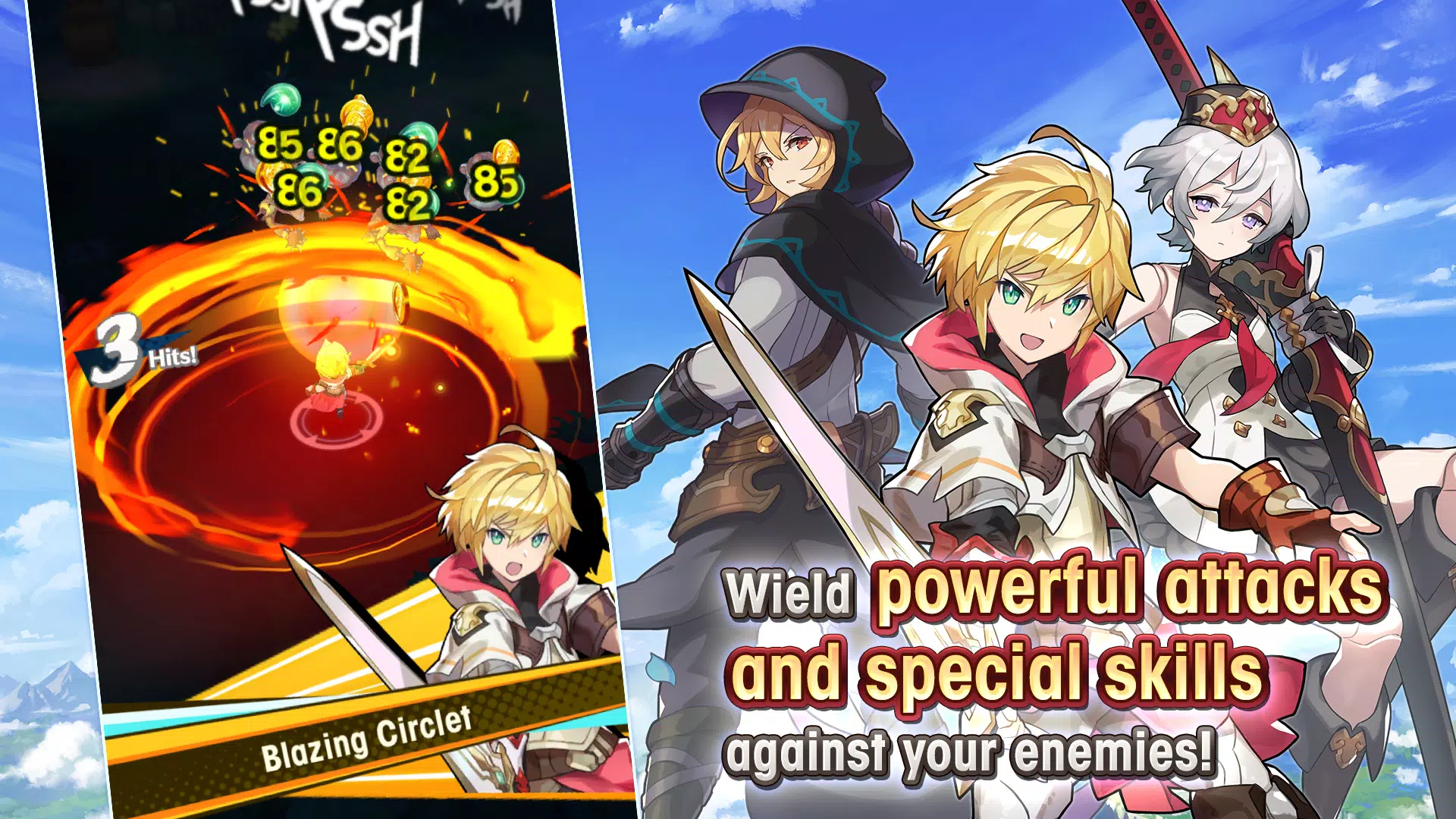 Co-op Real Time Battles: Play with three friends to defeat challenging bosses and raids. Use co-op gameplay to complete the story.