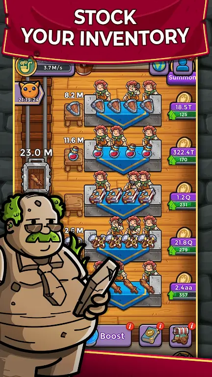 Hello future entrepreneurs! Welcome to the world of Arpeegia! In the exciting RPG simulation game Dungeon Shop Tycoon MOD APK, you become the owner of a merchandise shop in a fantasy world with lots of customers! You get to carve, enchant, and sell items, as well as recruit champions to help your store run more smoothly! And your shop will get lots of customers and you will be able to go to more dangerous and more rewarding sell spots!