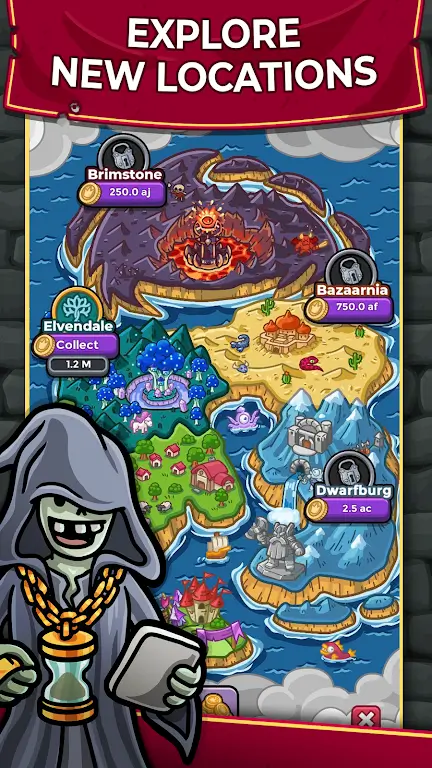 Global Expansion: Grow your company all over Arpeegia, from the cozy Shireville and magical Elvendale to the bustling Dwarfburg and the hellish Brimstone.