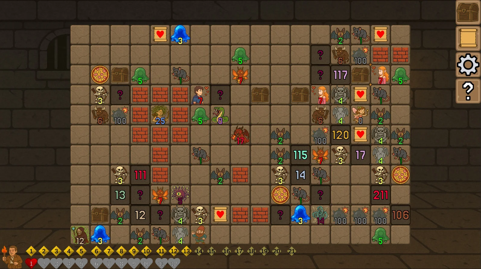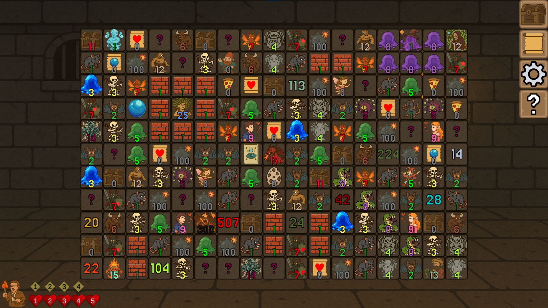 Clear dungeons with logic and luck! DungeonSweeper blends classic minesweeper mechanics with RPG exploration, traps, and hidden treasures.