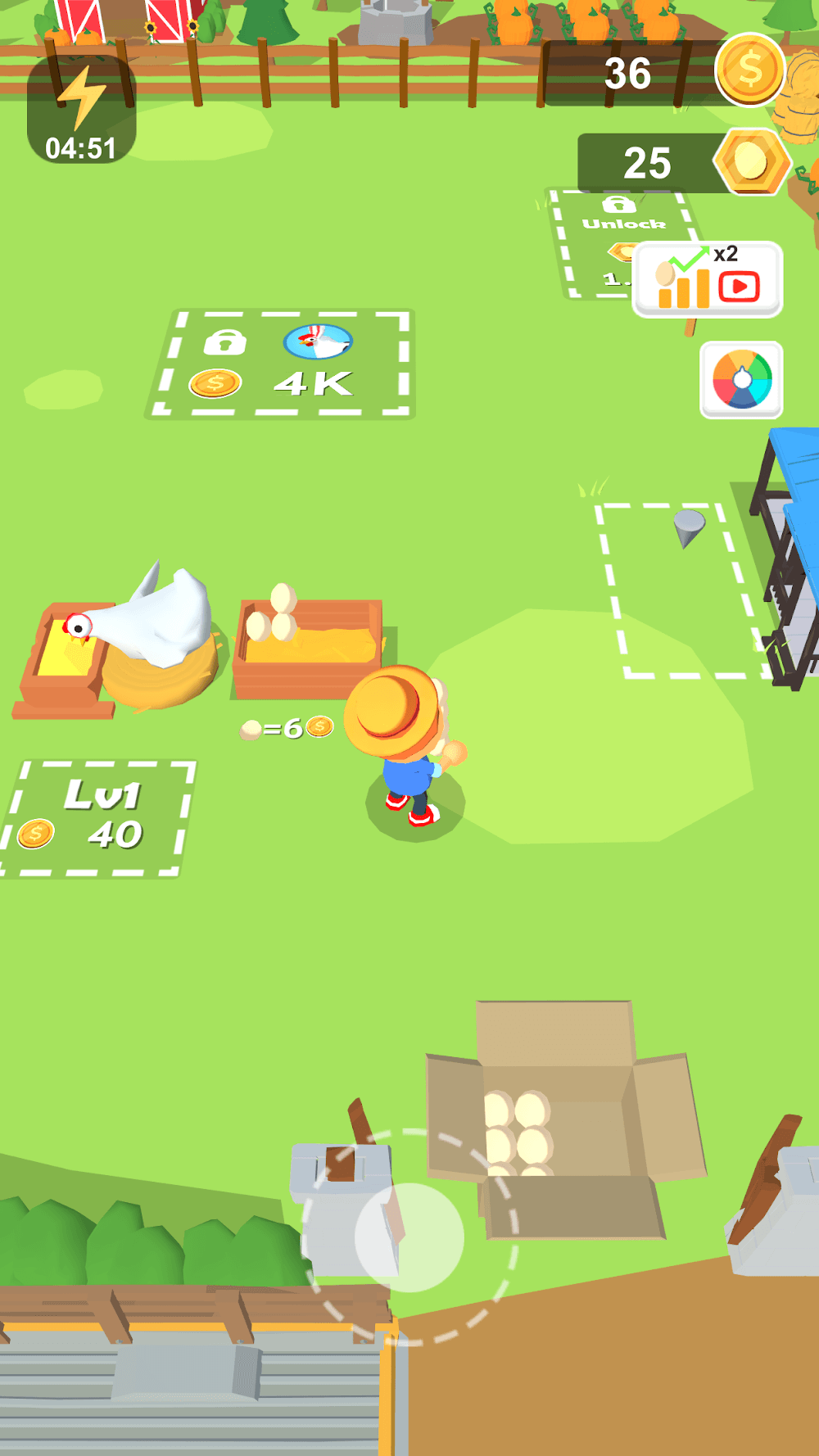 Expansive Farm Management: Unlock new regions, construct larger barns, and rearrange to improve efficiency and happiness for your birds.