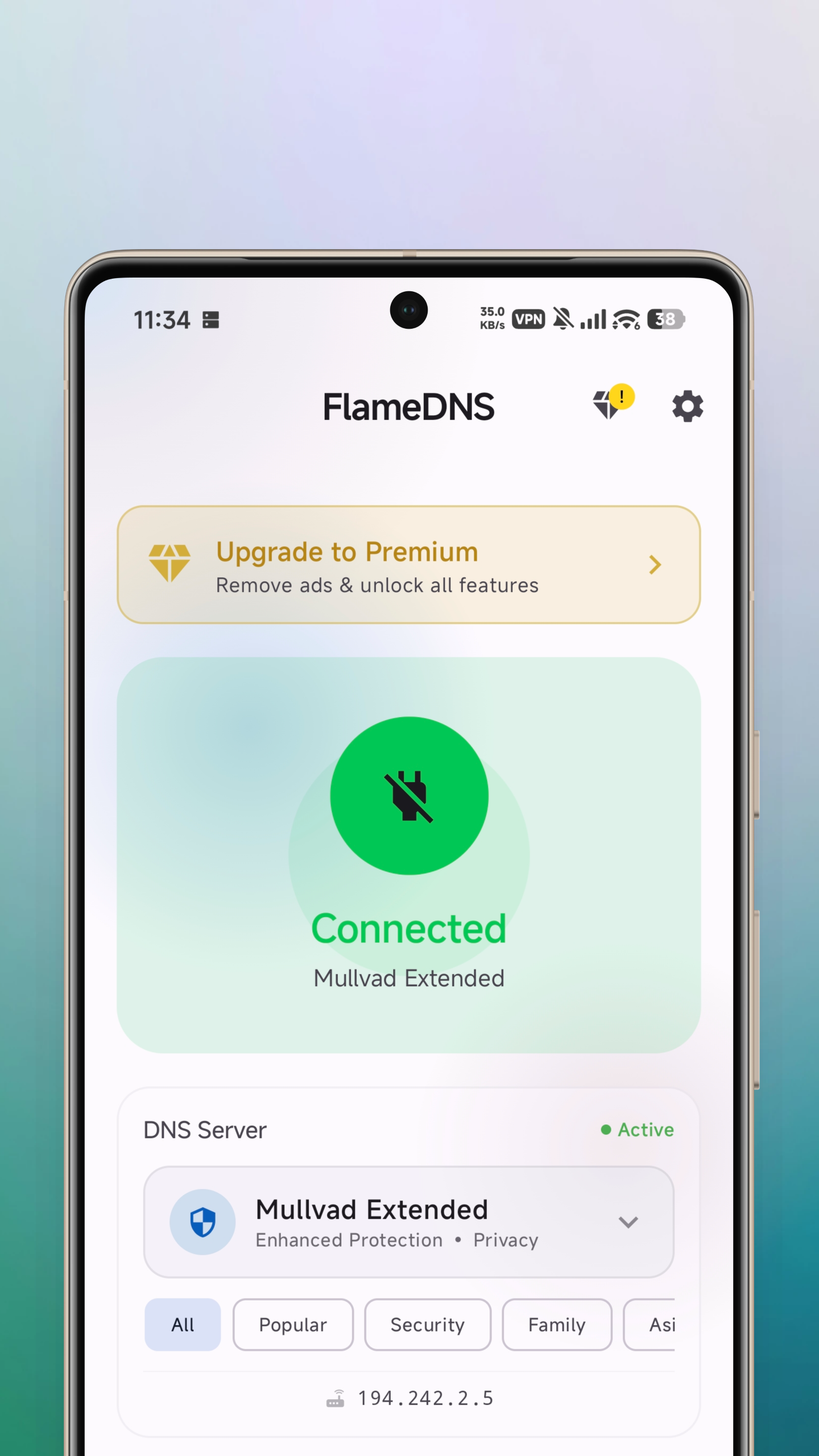 FlameDNS - DNS Changer MOD APK V7.1 (Premium Unlocked)