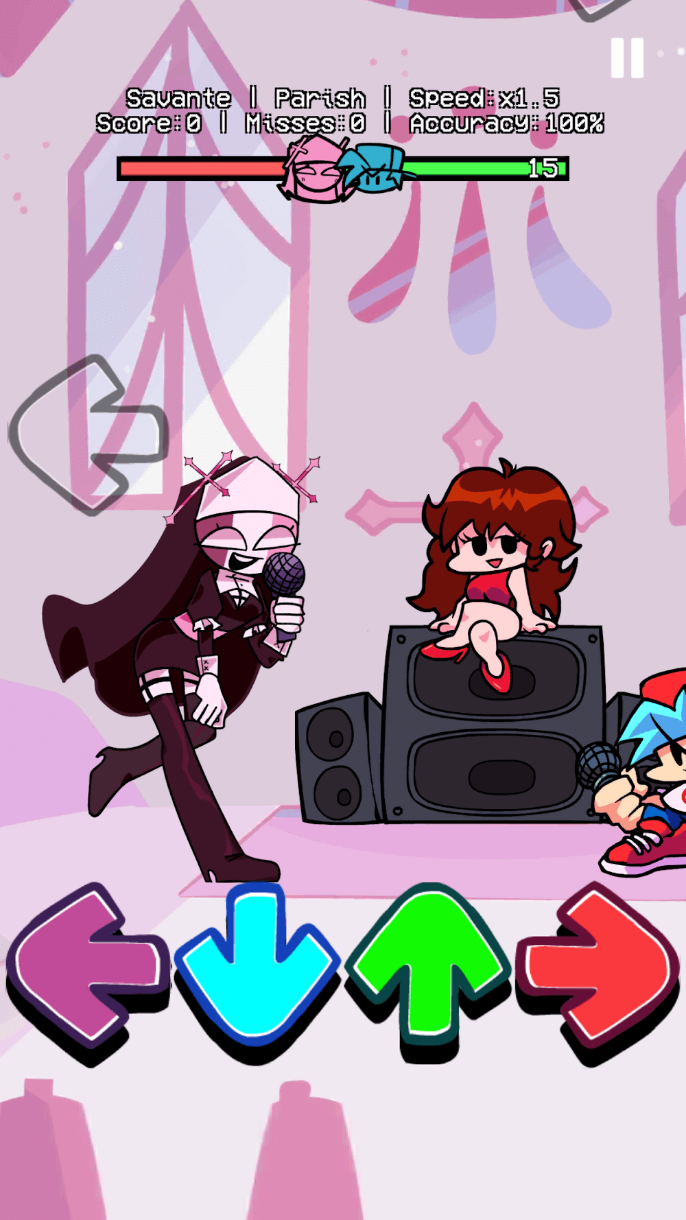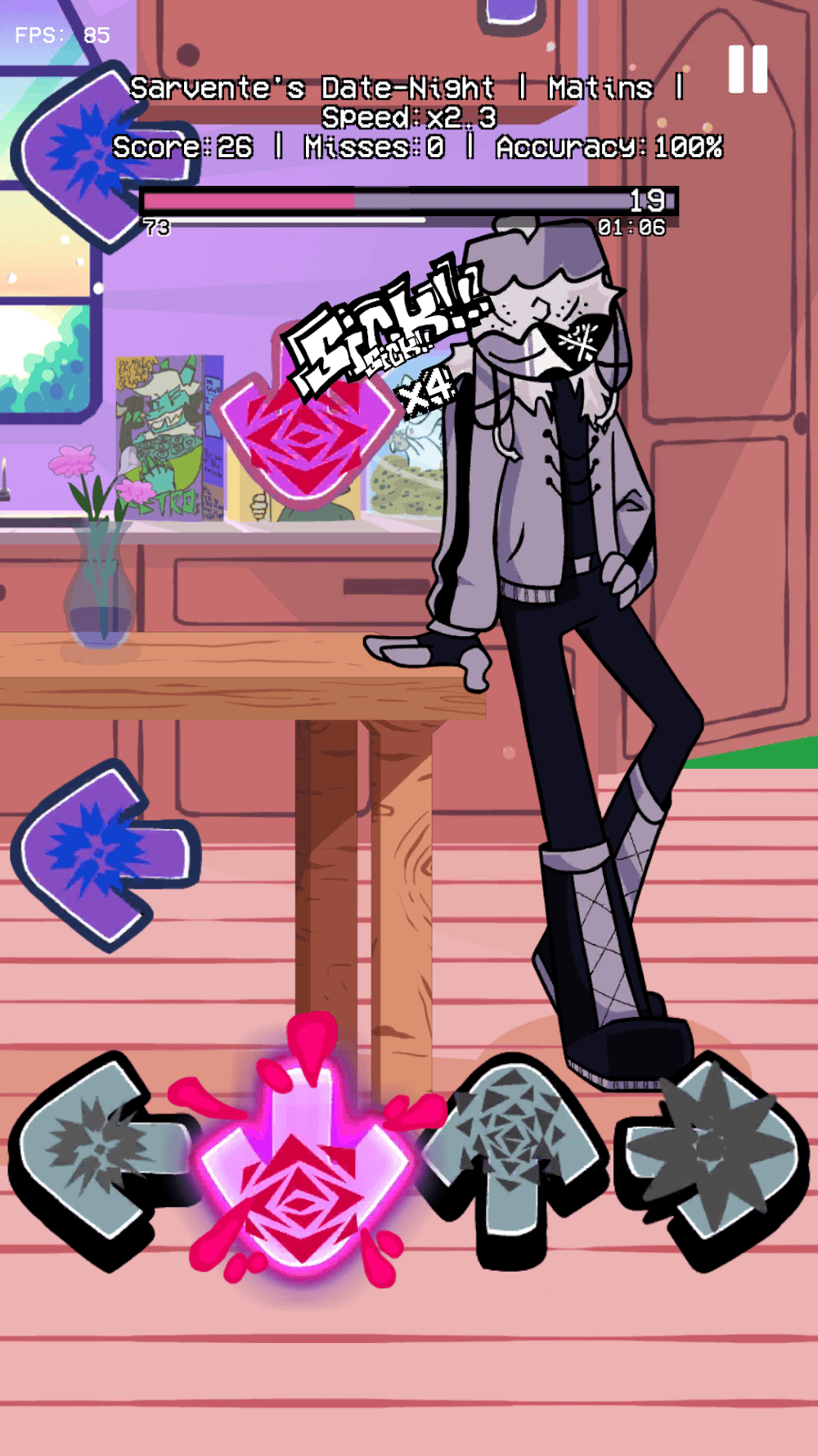 The bottom of your screen features a tug of war-style health bar that reflects your performance in real time. If you fully hit a note, you will gain a positive rating – “Sick” or “Good”. If you are not able to hit a note or are late to an input, you give your opponent the opportunity to pull the health bar in their favor. The FNF Midfight MOD APK feature’s song difficulty depending on the different patterns such as double notes, notes that are set very close together, and notes that are connected to a sustained hold. The difficulty also depends on the beats per minute of the song as some sections of the song will speed up resulting in notes coming at you really fast. The player has to not lose control and focus in order to successfully hit the notes without missing any and also has to keep up with the rhythms to avoid being out of sync with the song’s structure. This requires not just speed but also a good understanding of the song.