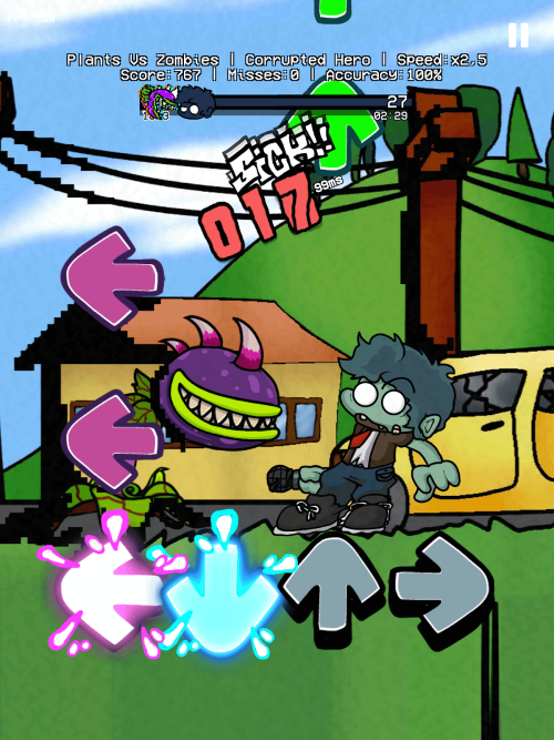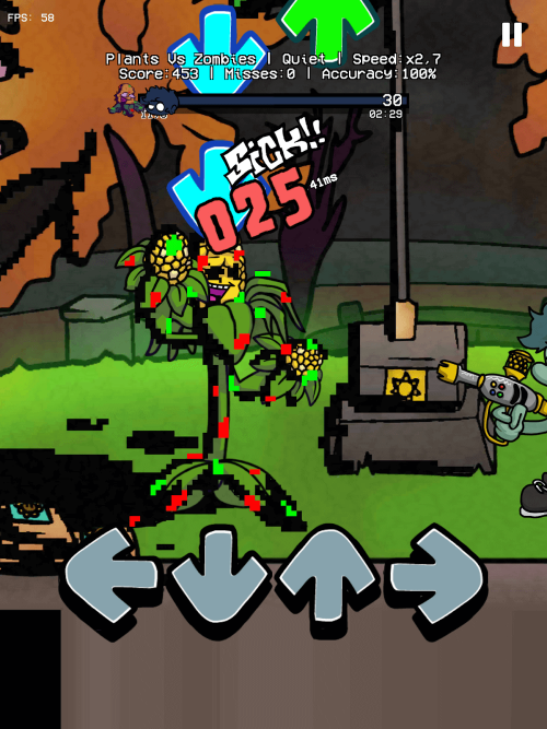 FNF Plants vs Rap Funkers MOD APK game is based on the four-button rhythm system. Each song has a specific genre and the player listens to the song while pressing the keys aligned to the color of the notes. When the player strikes the notes on their corresponding colored keys, their score goes up. Each note strikes add to the player’s level and they win the game. FNF offers multiple game levels, and the player can defeat the level of their game according to their ability, be it a slow pace or an incredibly fast level. To win the game, the player has to think, strategize, and be fast.