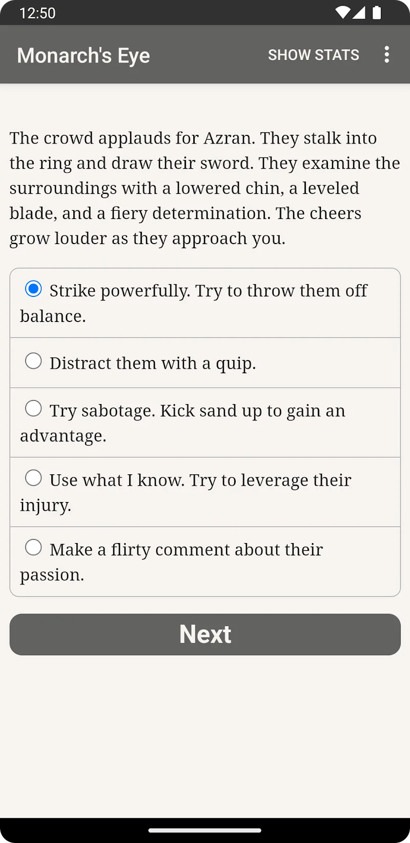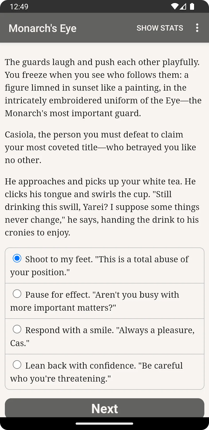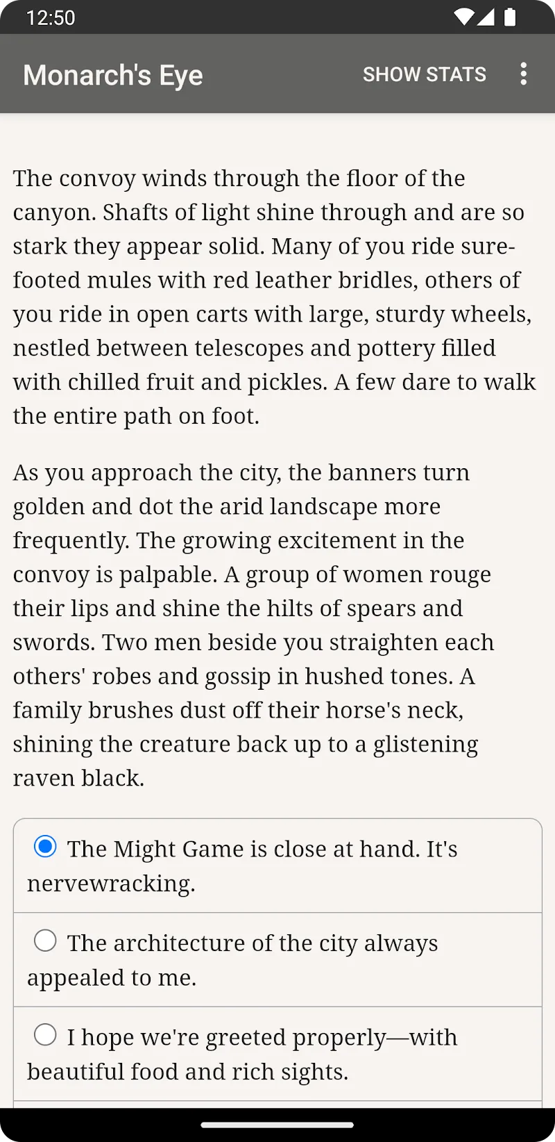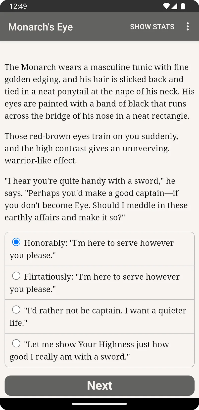 Games of the Monarch’s Eye is about self-discovery. Take on the personal challenge of learning from your past failures and using them to shape future successes. Positioned in a richly developed world of political intrigue, tactical combat, and an emotionally charged storyline, the extensive role-playing game (RPG) experience is unparalleled. Are you ready to assume your position of power to gain the multispectral insight of the Monarch’s Eye? Download the game and set forth on your epic journey today!