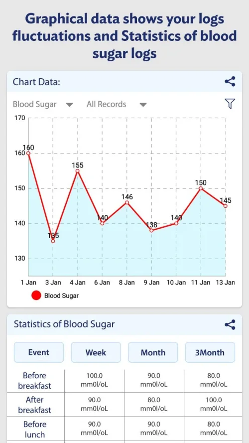 Stay consistent with your tracking by logging important details such as meal times, insulin intake, medications, and physical activities. The app helps you connect the dots between your habits and your glucose levels, giving you a clearer picture of what impacts your health most.