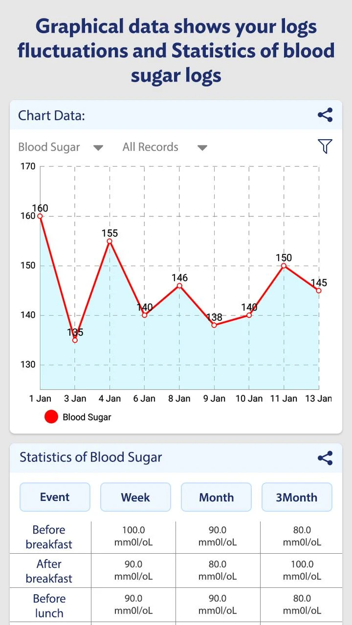 With detailed charts and reports, you can monitor your progress over time and share insights with your healthcare provider. Glucose: Blood Sugar Logs makes it easier than ever to stay accountable and proactive in managing your condition.
