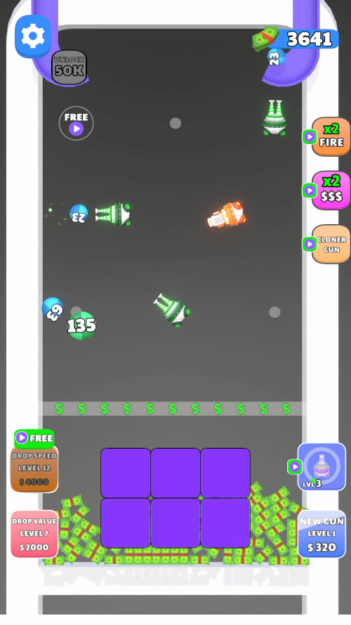 In Guns and Bounce MOD APK, the core loop is simple to learn but difficult to master. You begin with basic cannons that shoot simple projectiles. As balls enter the screen, your cannons automatically target and bounce them. Every hit generates income. The strategy enters when you decide how to spend your earnings: do you buy more cannons to fill the grid, or do you merge existing ones to create a high-tier powerhouse?