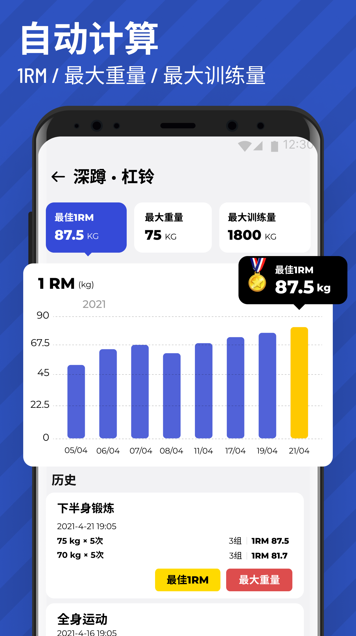 β’ Visual charts for strength progress