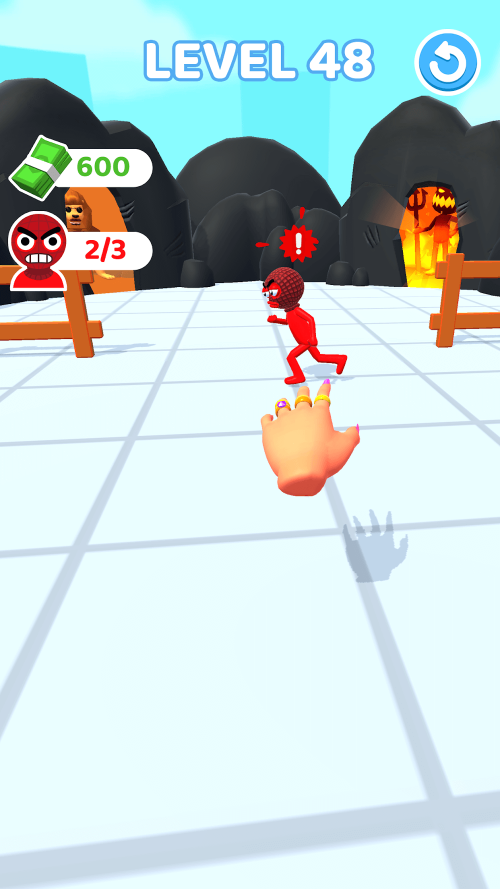 In Hand Strike MOD APK, strategy is just as important as speed. Every level begins with a tactical phase where you can assess the “bad guys” and their surroundings. Your primary weapon is the hand control, allowing for fluid movement and interaction. Want to lure an enemy into a trap? Use a quick poke to grab their attention. Need to clear a room? Set up a series of environmental hazards that trigger as they approach.