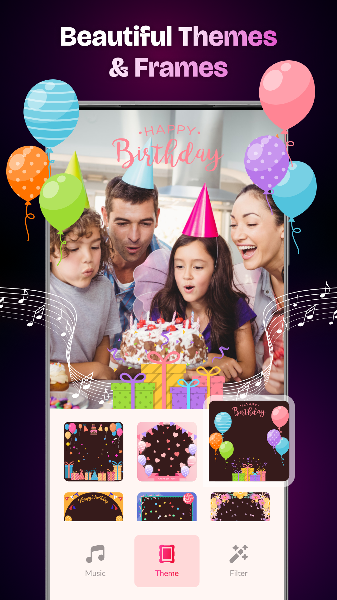 Create beautiful birthday videos with photos, music, frames & effects. Make personalized Happy Birthday wishes in minutes easily and quickly.